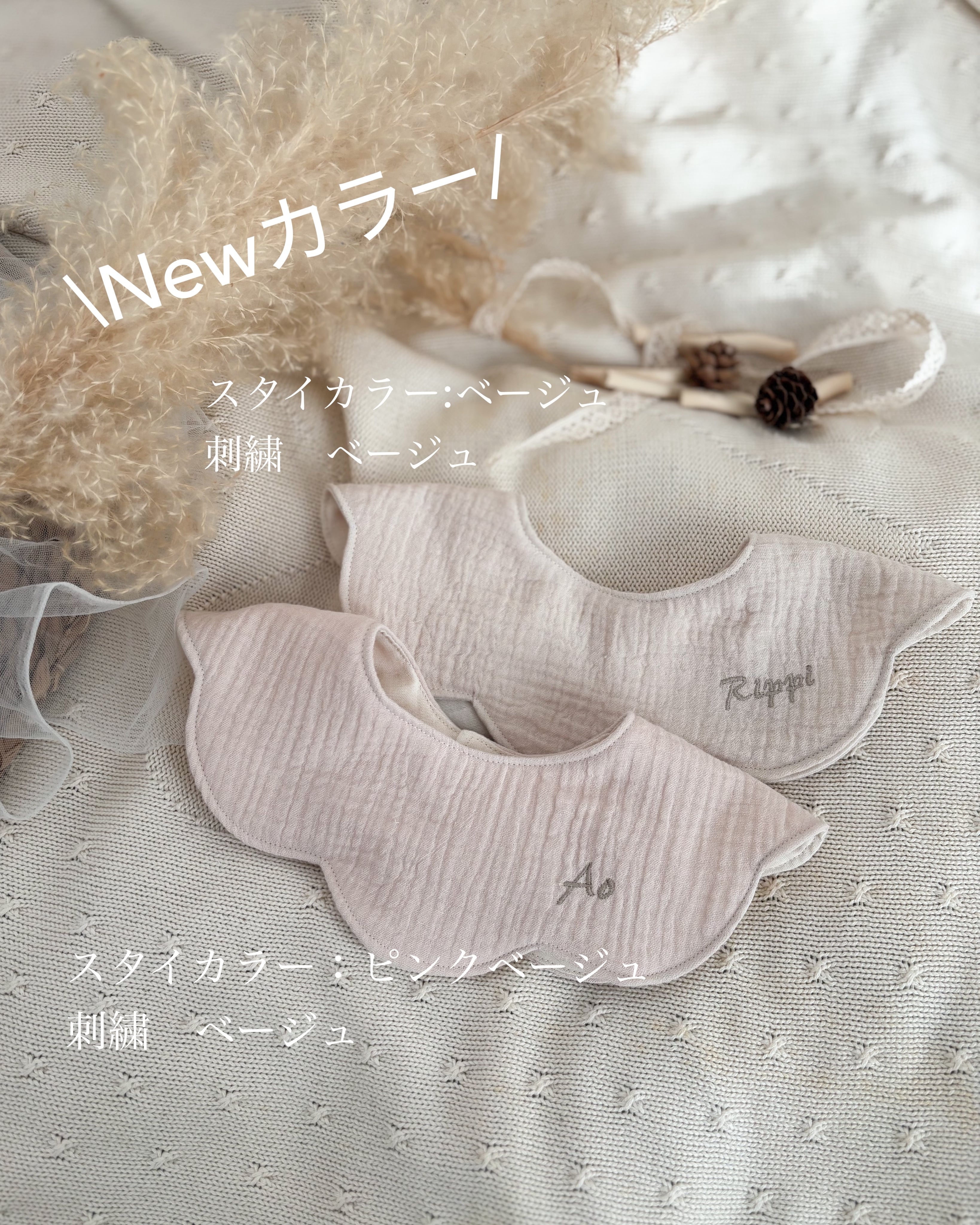 【全5色】ポコポコ花びらスタイ ヘアバンドセット 名入れ刺繍 出産祝い くすみカラー